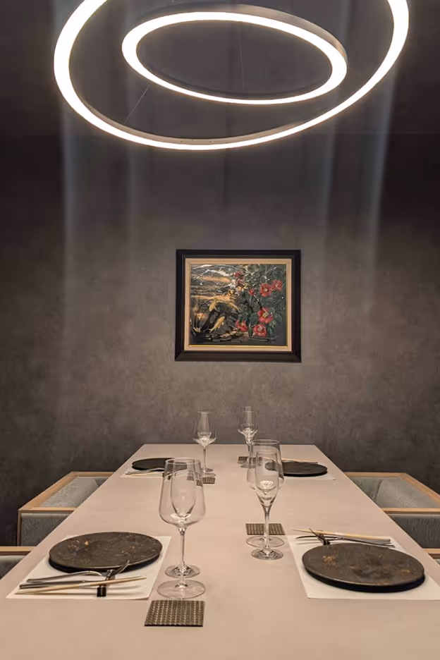 Tsubaki—the camellia flower—blooms with quiet elegance during winter's depths, reflecting our commitment to finding beauty in each season. Like its namesake, our restaurant offers a warm sanctuary where refined simplicity and natural splendor coexist, and every detail carries meaning.